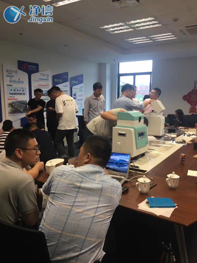 凈信資深工程師沈工在講解儀器實(shí)際操作問題