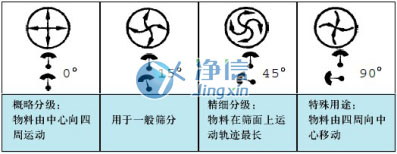三次元旋振篩,由直立式電機(jī)作激振源,電機(jī)上端安裝偏心重錘(基準(zhǔn)塊),下端安裝可調(diào)節(jié)偏心塊,如下圖所示,當(dāng)兩側(cè)偏心塊向中間合攏,振幅變小;當(dāng)偏心塊向兩側(cè)分離,振幅變大。通過(guò)調(diào)節(jié)偏心塊的位置將電機(jī)的旋轉(zhuǎn)運(yùn)動(dòng)轉(zhuǎn)變?yōu)樗健⒋怪薄A斜的三次元運(yùn)動(dòng),通過(guò)調(diào)整下端兩偏心塊的夾角大小來(lái)控制振幅,把這個(gè)運(yùn)動(dòng)傳遞給篩面調(diào)節(jié)下端偏心塊的相位角,可以改變物料在篩面上的運(yùn)動(dòng)軌跡。