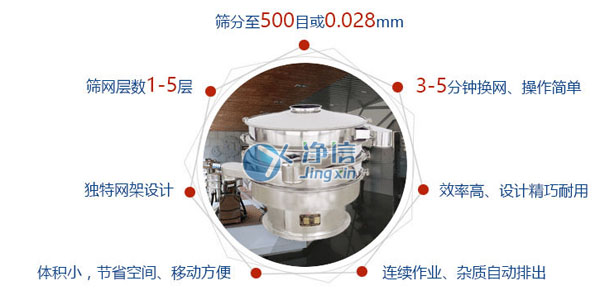1.篩分過(guò)程全封閉,粉末不飛揚(yáng)、液體不泄露、改善生產(chǎn)環(huán)境,篩分最細(xì)可達(dá)500目(28微米)過(guò)濾最細(xì)可達(dá)5微米。